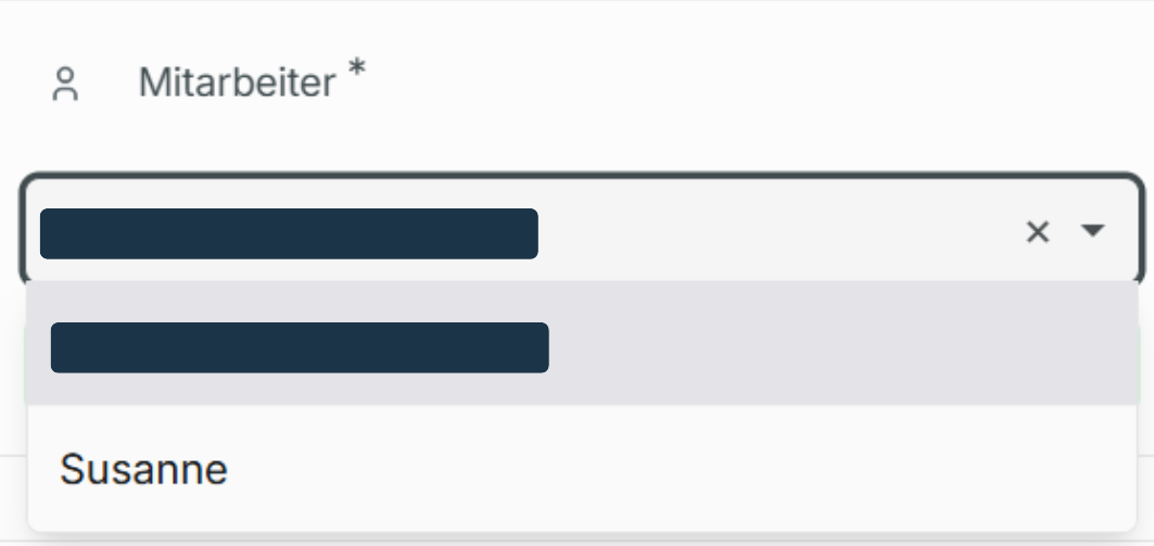 Wenn Sie die Inhaber-Rolle haben, können Sie jeden Mitarbeiter auswählen, für den Sie eine Abwesenheitsanfrage erstellen möchten. Wenn Sie sich jedoch als Inhaber-Rolle in einer bestimmten Filiale befinden, können Sie keine Abwesenheitsanfrage für einen Mitarbeiter erstellen, der nicht in der aktuellen Filiale ist.