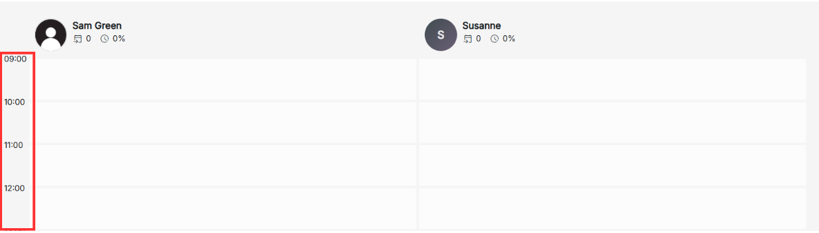 Du siehst zudem bei jedem Mitarbeiter unter seinem Namen für den ausgewählten Tag Anzahl der Termine sowie die Auslastung (%) der verfügbaren Buchungszeit.