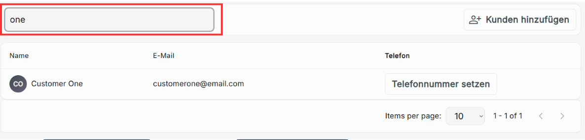 Klicken Sie auf die „Kunden suchen"-Suchleiste, um bestimmte Kunden zu finden. Suchen Sie mit dem Namen oder der E-Mail-Adresse des Kunden.