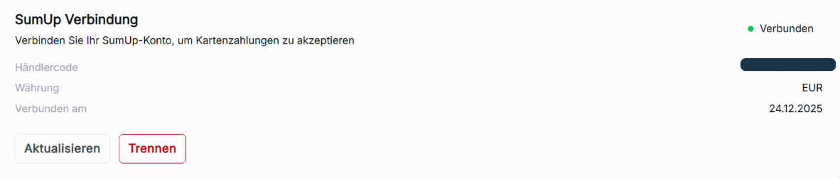 Connected at: Tells the date your SumUp account has been connected to your organization's branch.