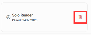 Sobald die Verbindung erfolgreich hergestellt wurde, erscheint dein Lesegerät in der Übersicht (Solo Reader) mit dem Hinweis "Paired". Du kannst nun in deiner Filiale Kartenzahlungen aus der zynday App über das Kartenlesegerät anfordern. Der zu zahlende Betrag wird dabei automatisch an das Kartenlesegerät übermittelt.