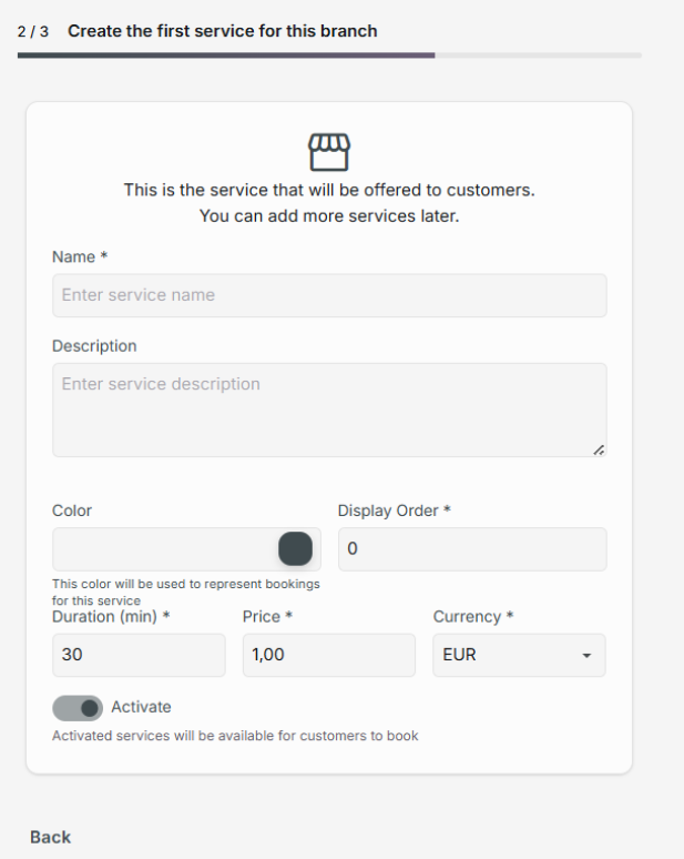2. Erstelle die erste Dienstleistung für diese Filiale