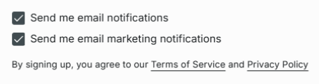 Bei der Registrierung mit deiner E-Mail-Adresse kannst du durch Aktivieren oder Deaktivieren des entsprechenden Kontrollkästchens auswählen, ob zynday E-Mail-Benachrichtigungen und/oder Marketing-E-Mails senden darf.