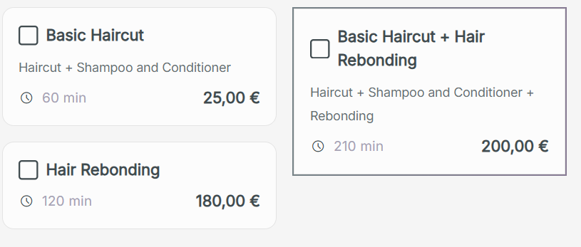 Beachte: Das Feld Beschreibung ist optional. Wir empfehlen jedoch stark, hier etwas zu ergänzen, denn die Beschreibung ist in deinem Buchungsassistenten für deine Kunden ebenfalls sichtbar und hilft ihnen, die richtige Dienstleistung zu buchen.
