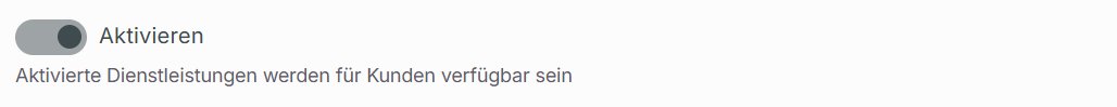 Du kannst wählen, ob deine Dienstleistung für Kunden zur Buchung in deinem Buchungsassistenten sichtbar ist oder nicht angezeigt wird (z.B. wegen Einstellung oder Pausierung der Dienstleistung). Setze dafür den Regler Aktivieren auf "on" (nach rechts). Dies kann jederzeit geändert werden.