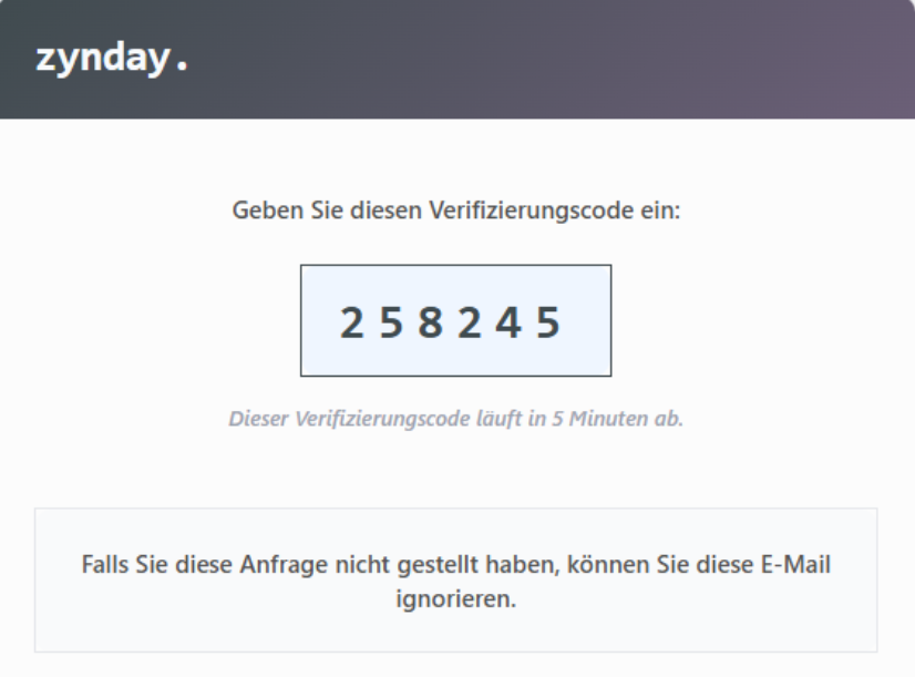 • Überprüfe, ob die E-Mail-Adresse möglicherweise bereits bei zynday registriert ist. Verwende dafür die Anmelden-Funktion (siehe weiter unten)