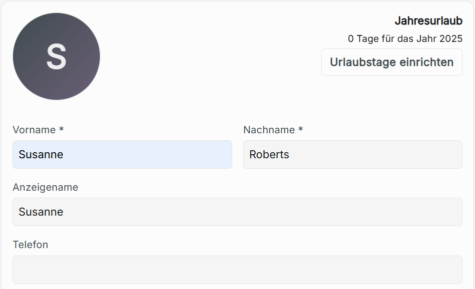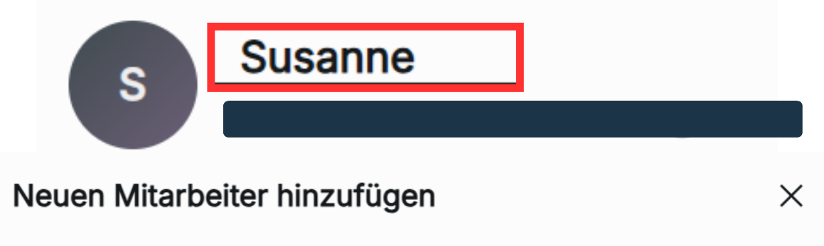 Mitarbeiter ohne die Eigentümer- oder Admin-Rolle, können in ihrer eigenen Mitarbeiterkarte lediglich den Vornamen, Nachnamen und Anzeigenamen unter Bearbeiten ändern.