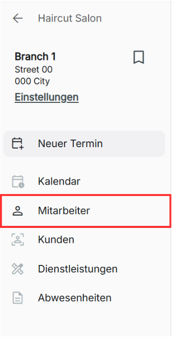 Mitwirkender – Hat Zugriff auf die Anzeige des Kalenders der Filiale, Mitarbeiter, Kunden, Dienstleistungen und Abwesenheitsanfragen. Die Rolle kann neue Termine hinzufügen, seine persönlichen Mitarbeiterkontoinformationen bearbeiten und Abwesenheitsanfragen für sich selbst erstellen. Kein Zugriff auf die Filialeinstellungen.