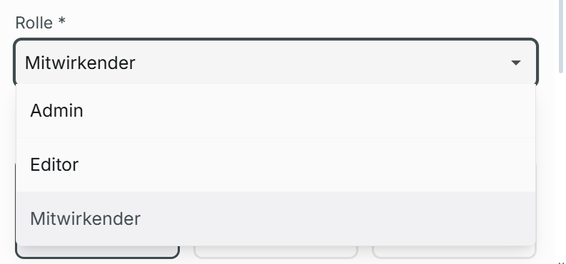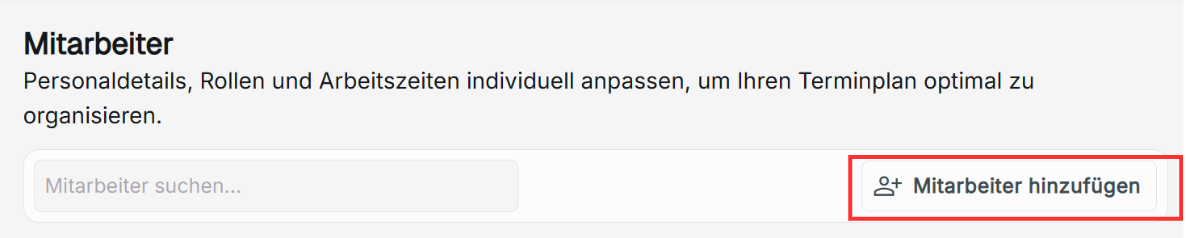 Beachte: Das hinzufügen von Mitarbeitern kann nur von der Eigentümer- oder Admin-Rolle durchgeführt werden.