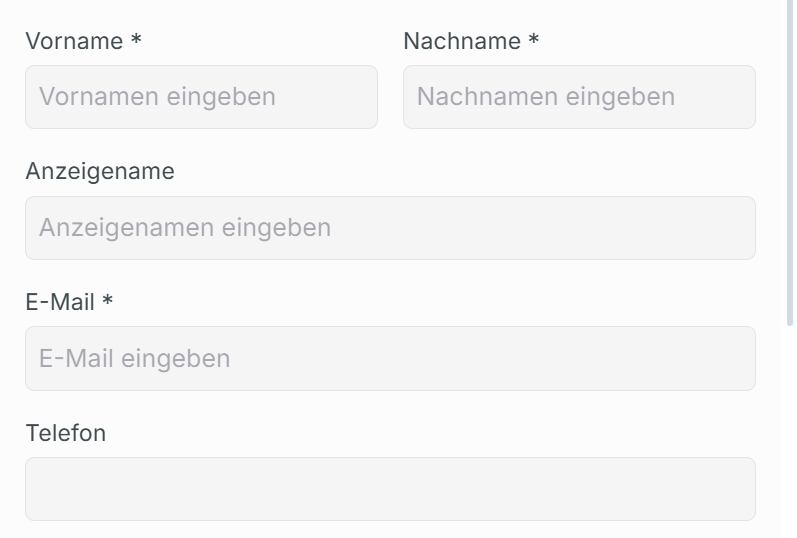 Um einen neuen Mitarbeiter hinzuzufügen, müssen Vorname, Nachname und eine E-Mail-Adresse ausgefüllt werden, bevor Sie fortfahren können.