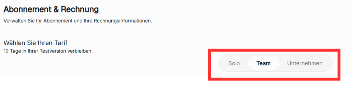 Auf der Übersichtsseite Abonnement & Abrechnung erscheint nun dein gewähltes Abonnement. Klicke auf Abonnement verwalten, um dein Abonnement zu ändern oder zu kündigen.