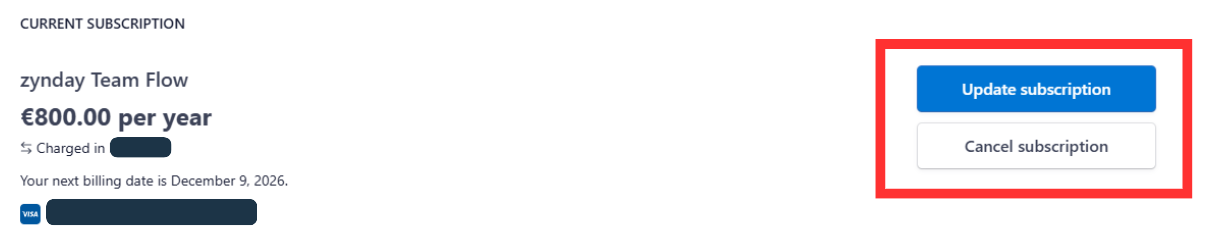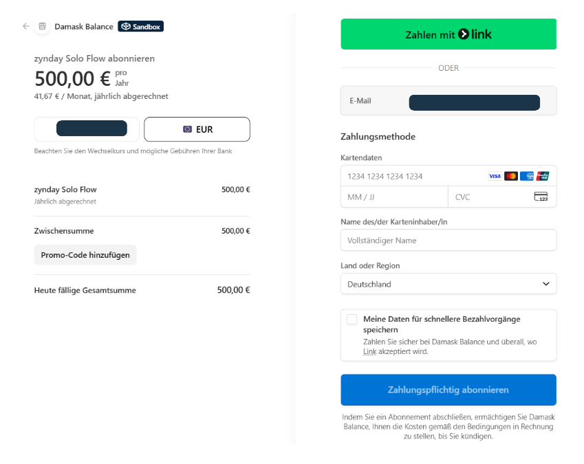 Du wirst zu Stripe weitergeleitet, wo du deine Zahlungsdetails siehst und dein Abonnement verwalten kannst: